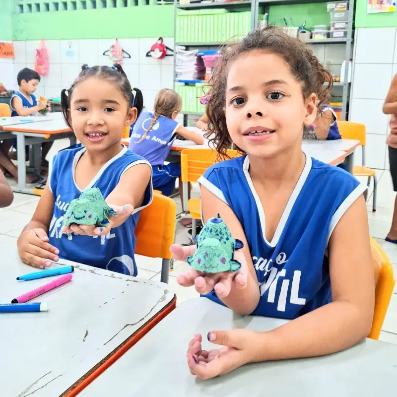 Hoje a turminha do Infantil V mergulhou em uma proposta criativa utilizando partes de caixas de ovos e canetinhas coloridas. Com muita curiosidade e alegria, cada criança personalizou seu pedacinho de caixa, criando personagens, monstrinhos e formas únicas a partir da própria imaginação. Além de ser uma proposta sustentável, ao reutilizar materiais, a pintura […]