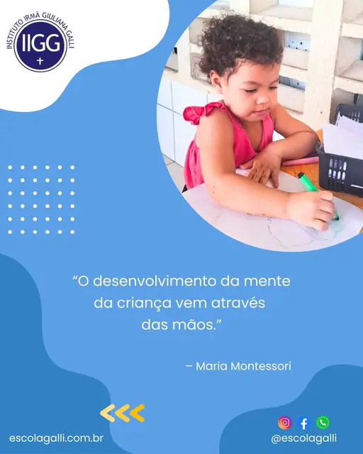“O desenvolvimento da mente da criança vem através das mãos.” – Maria Montessori Saiba mais Escola IIGG – https://escolagalli.com.br/ Gotas de Amor – https://gotasdeamor.net/
