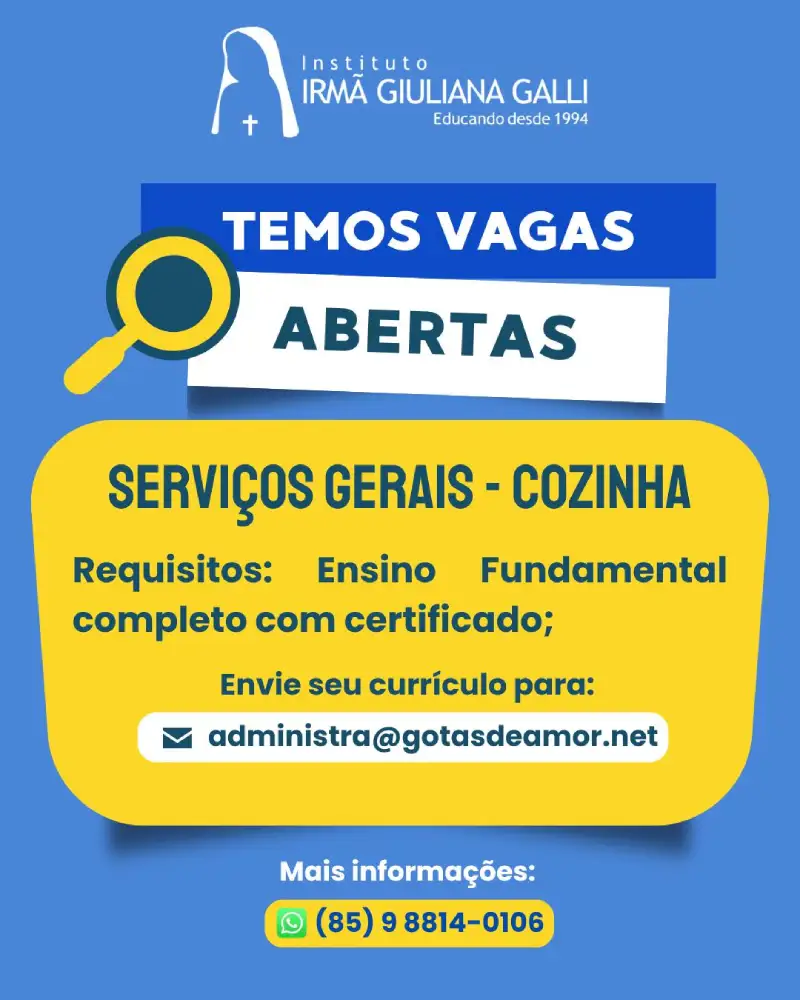 Estamos com vaga para Serviços Gerais e Cozinha 👩‍🍳🧹