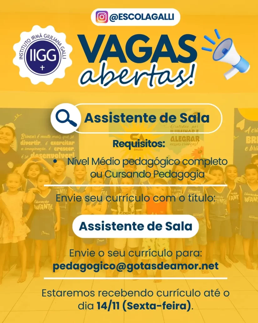 Envie seu currículo para: pedagogico@gotasdeamor.net
